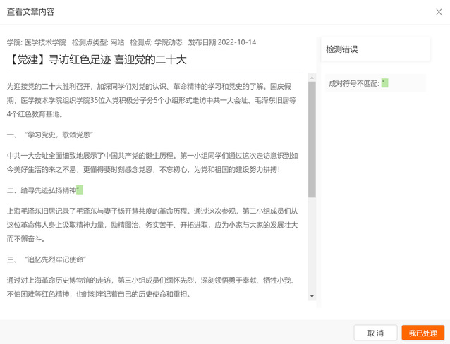 此次寻访红色基地是我院入党积极分子教育的重要内容。通过“打卡”爱国主义教育基地,重温红色记忆,同学们感悟到了中国共产党波澜壮阔的历史和坚定不移的思想伟力,更加坚定了理想信念,未来将更加努力在人民健康道路上继承和发扬伟大建党精神。(医学技术学院)