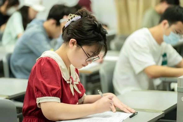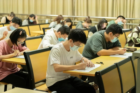 22级新生们斗志昂扬,信心满满,负责监考的学长学姐们引导并监督同学们严格遵守考试纪律。