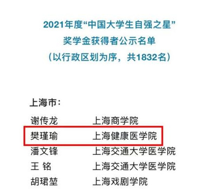 经各高校推荐、省级初评、全国评审等环节,我校医学技术学院2019级卫生检验与检疫专业樊瑾瑜荣获2021年度“中国大学生自强之星”荣誉称号和奖学金。