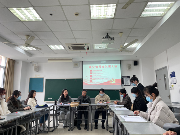 第一项议程:党支部书记彭楠老师介绍了出席会议情况。徐心怡等同学逐一进行了入党志愿书的宣读,并结合自身实际情况,从入党动机、对党的认识、学习及创新创业各类表现,特别是疫情防控期间发挥先锋模范作用。经过无记名投票,党支部同意接收徐心怡等4名发展对象成为中共预备党员。