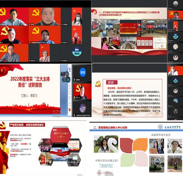2023年1月10日,医学技术学院党总支在线开展党支部书记抓基层党建工作述职大会。学院党总支书记、院长刘敏娟、全体党总支委员、各支部书记参加本次会议。会议由学院组织员何双泉主持。