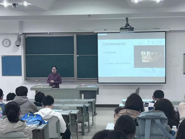尚书老师通过互动,让同学们对牙齿口腔种植历史有了全面了解。尚书老师从现代口腔种植学发展简史重点介绍,让同学们看到口腔医学技术的发展前景,更清晰帮助同学们明确自己的职业发展定位。“要吃得了苦、耐得住寂寞、下得了苦功。”尚老师这么勉励同学。