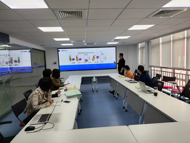 负责《仪器分析》课程教学的冯婧和李佳两位老师以“乙醇和正丁醇的气相色谱分析”实验课为例,向大家介绍了实验课程的教学组织过程。运用线上线下混合式教学方法开展教学,线上老师布置实验预习及视频操作学习任务,学生提前做好预习工作;线下教学两位老师结合学生预习反馈的实验方法和操作问题进行重点解答,同时分组进行仪器模拟讲解以及样品处理,实验课安排合理紧凑,内容充实。