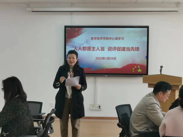 为确保本科合格评估高质量完成、确保学院高质量发展,医学技术学院于3月28日在4507开展题为“人人都是主人翁 迎评促建当先锋”的中心组学习。本次学习由学院党总支书记、院长刘敏娟主持,中心组全体成员出席。
