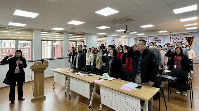 最后,刘敏娟带领全院教职工进行誓师:“以决战决胜的鲜明态度和敢战必胜的斗争精神,以全新的精神面貌、以健康人最积极的心态面对这次全面大考。爱校荣校、立足岗位作贡献,迎评冲刺当先锋,主动担当不推诿,团结协作尽履职,确保本科合格评估高质量通过、引领学院高质量发展。”
