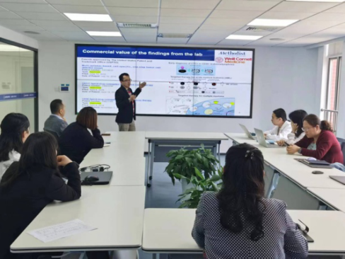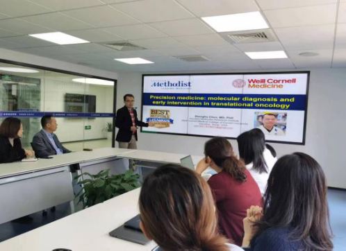 随后,陈正虎博士作了题为“Precision medicine: molecular diagnosis and early intervention in translational oncology”的专题报告。陈博士介绍了近三年(2019-2022)在美国康奈尔大学医学院附属休斯敦卫理公会研究所所从事的研究工作。以一种新兴技术——核酸适配体技术为核心,陈博士及其同事们进行了一系列极具创造性且卓有成效的研究工作,包括发现了一种靶向三阴性乳腺癌(TNBC)的核酸适配体,鉴定出了TNBC中一种新型的生物标志物并在此基础上开发出了靶向TNBC的新型化疗、免疫治疗的新策略。此外,陈博士及其所在科研团队还开发出了一种基于核酸适配体技术、新型纳米药物递送系统,在体内体外实验中大大降低了传统化疗药物的副作用并极大地提高了药物利用效率。通过大规模文库筛选,陈博士所在团队率先获得了特异结合新冠病毒(SARS-CoV-2)表面刺突蛋白S/RBD结构域的适配体探针并用实验证明了该适配体能有效预防新冠病毒感染宿主细胞。核酸适配体技术的其他应用包括细胞培养中的支原体检测,血液中的循环肿瘤细胞(CTC)检测等。