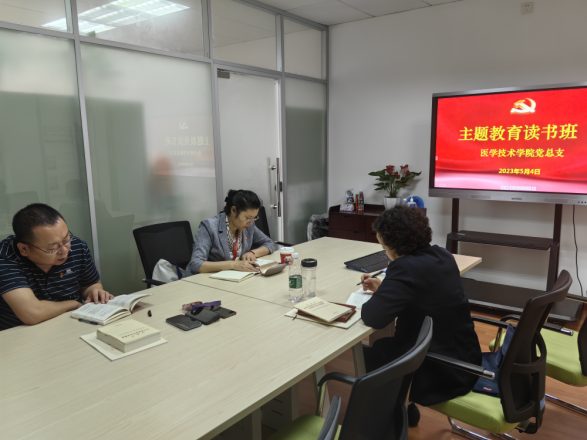 为扎实推进主题教育学习工作,5月4日在4517,医学技术学院主题教育读书班开展第二次学习。党总支书记、院长刘敏娟、副院长陈凤贞、副书记关磊参加此次学习。