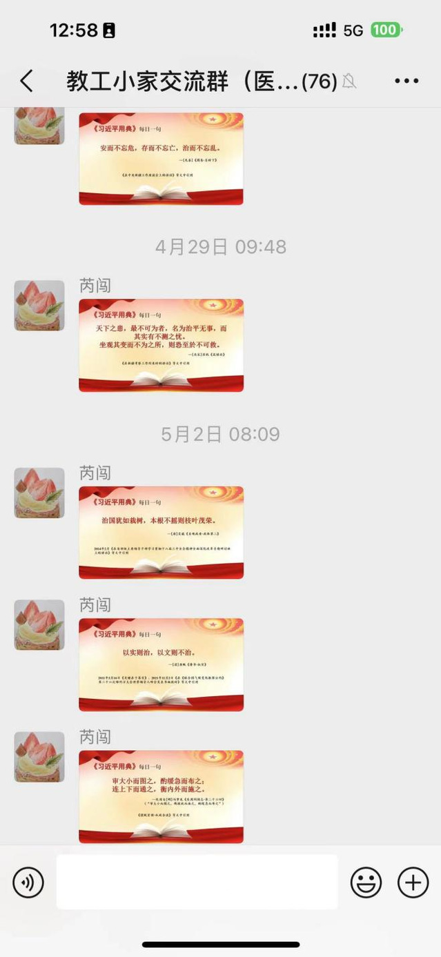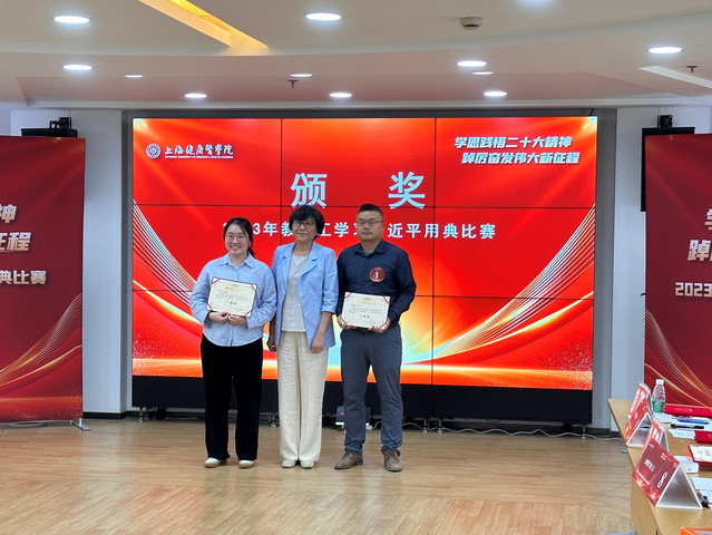 5月10日,下午,北苑1号楼500党员活动中心,由校工会主办,马克思主义学院、文理教学部协办,共同组织了以“学思践悟党的二十大精神 踔厉奋发伟大新征程”为主题的上海健康医学院教职工学习习近平用典比赛。医学技术学院杨宇海和张鑫妍老师荣获教职工学习习近平用典比赛“一等奖”。