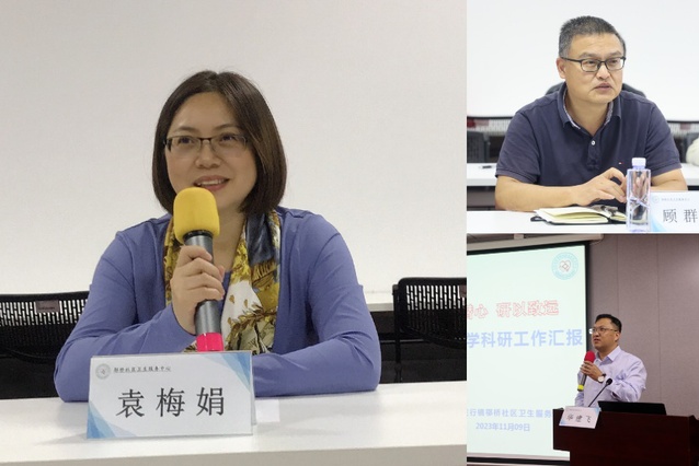邬桥社区卫生服务中心业务副主任袁梅娟主持了会议,邬桥社区卫生服务中心党支部书记顾群辉做会议致辞,邬桥社区服务中心主任华建飞做了科研与教学工作汇报。
