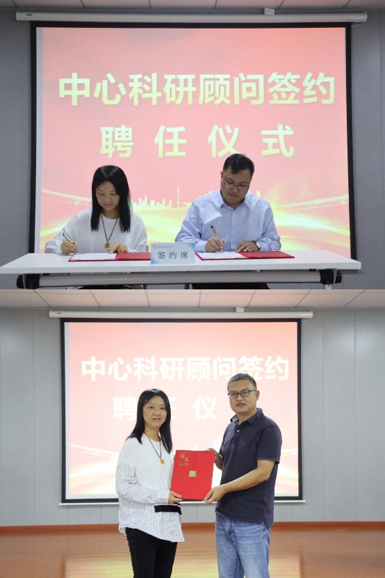 华建飞主任和罗盈怡导师签订科研顾问聘任协议书,顾群辉书记为罗盈怡导师颁发科研顾问聘书