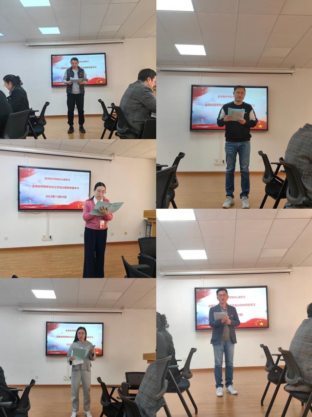 为深入学习贯彻习近平文化思想,医学技术学院于11月28日在4507开展中心组学习,本次学习由学院党总支书记、院长刘敏娟主持,中心组全体成员出席。