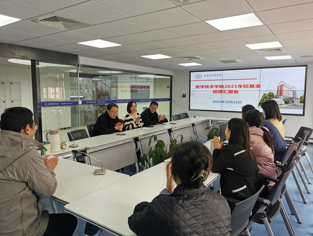 12月12日中午,医学技术学院2021年度校基金项目结题汇报在北苑3号楼会议室举行,会议由科研副院长李延飞主持,特邀我校健康与公共卫生学院陈伟教授,药学院梁蓓蓓副教授和分子影像重点实验室杨浩副教授为本次校基金结题汇报的评审专家。我院获批2021年度校级科研基金的11位老师参与了校基金的结题答辩汇报。