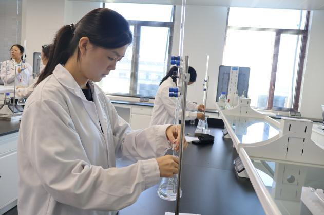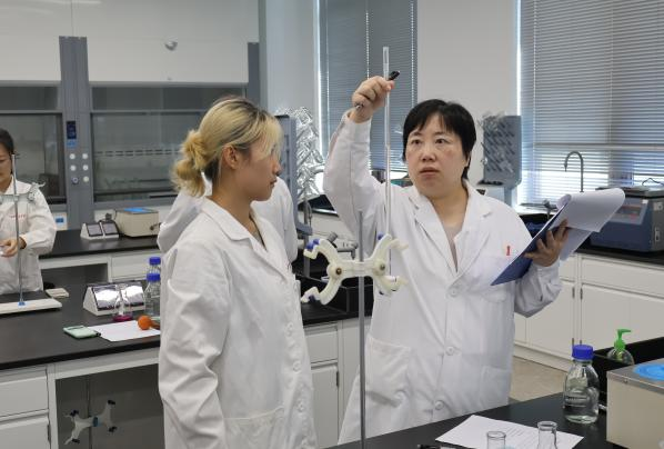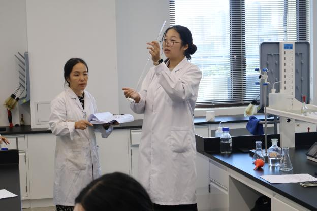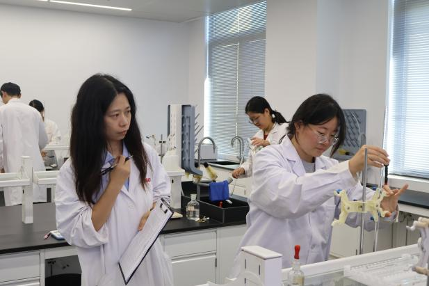 比赛现场,气氛紧张而有序。选手们全神贯注,从器皿的清洗、标准溶液的精准移取,到滴定终点的敏锐判断、数据的严谨处理,每一个步骤都力求完美,展现了上海健康医学院学子扎实的专业功底、严谨的科学态度和娴熟的动手能力。评委由来自医学技术学院和药学院的经验丰富的专业教师担任,他们一丝不苟,从操作规范性、结果准确度、完成效率等多维度对选手进行公平、公正的评判。