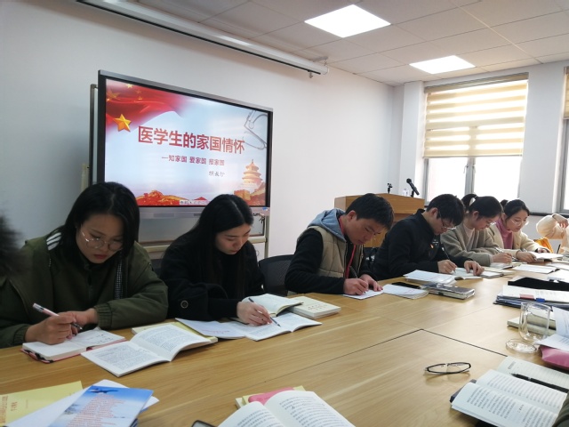 2019年12月6日14:30,医学技术学院学生党支部在4517进行了主题教育集中学习,此次学习的主题是学习新时代爱国主义教育实施纲要。学生党支部书记胡长沙领学,支部组织委员郭子叶、学生党员金明、曹金兰作为主要发言人。