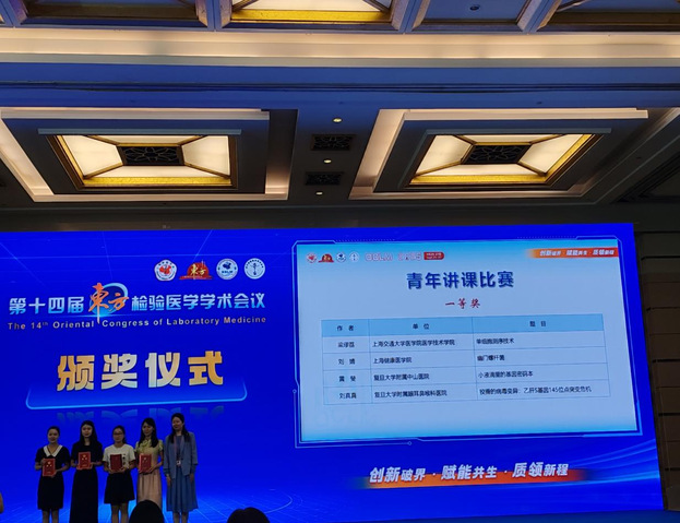 参赛者有来自各大高校附属医院的青年检验师,也有基础医学院从事检验教学的青年教师。讲课内容涵盖了微生物、免疫、生化、分子等检验技术。本次讲课比赛的评委都是深耕于检验和教学领域的教育专家。在有限的十分钟内,各位参赛者凭借过硬的专业知识以及生动有趣的教学方式给现场的观众上了精彩的一课。我院刘婧老师从幽门螺杆菌被发现的小故事娓娓道来,重点介绍了其流行病学、生物学特性、致病机制,检测方法等,最后也强调了幽门螺杆菌的防治。经过赛前准备充分,教案设计规范、课件制作精良,教学展示环节中重点突出,声情并茂,最终荣获第十四届东方检验医学学术会议“2025年青年讲课比赛”一等奖。