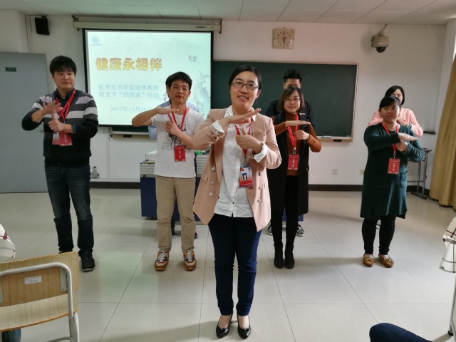 随后,退休教师来到医学技术学院会议室,由学院党员志愿者组成的舞蹈队,现场表演了手语舞蹈“感恩的心”。精心准备和周到的服务使退休的老教师们无不感受到“回娘家”的亲切与喜悦。学院党总支书记兼院长刘敏娟向各位老教师介绍了院情,并与退休教师们一起畅谈学院的新发展、新面貌。老教师们也借此机会相聚,互相交流退休后的新生活。