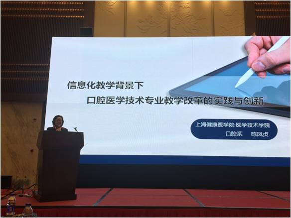 在分会场学术研讨中,医学技术学院陈凤贞副院长以《信息化教学背景下口腔医学技术专业教学改革的实践与创新》为题进行了专题报告,介绍了我校口腔医学技术专业将信息技术和专业教学深度融合,开发虚拟现实技能训练系统和增强现实教学素材系统,开展口腔CAD/CAM教学等一系列改革措施,获得与会代表的一致好评。