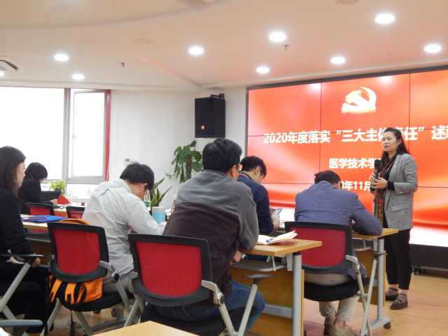 11月下旬,医学技术学院在1号楼500开展落实全面从严治党工作述职评议考核会。学院党总支委员、党支部委员参与此次会议。