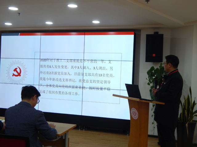 各党支部书记对支部落实全面从严治党的工作,从主体责任、查摆问题及分析原因和下阶段工作计划三个部分入手进行了汇报。教工党支部严把意识形态关口,强化师德师风教育。从开展一支部一品牌入手,严格落实“三会一课”,认真开展“四史”学习教育;支部通过廉政教育活动,组织参观闵行廉政教育馆、,落实党风廉政工作。学生党支部的从爱国情怀的培养,做好常规党员发展工作,加强学风建设,通过“”抗击疫情群英谱,一封家书--读懂共产党人的初心,一份特殊的思想汇报,以专业所长--抗击疫情,学四史--家校互动学”等展示了学生党支部建设成果。针对查摆问题,各党支部都提出了下一步思考。