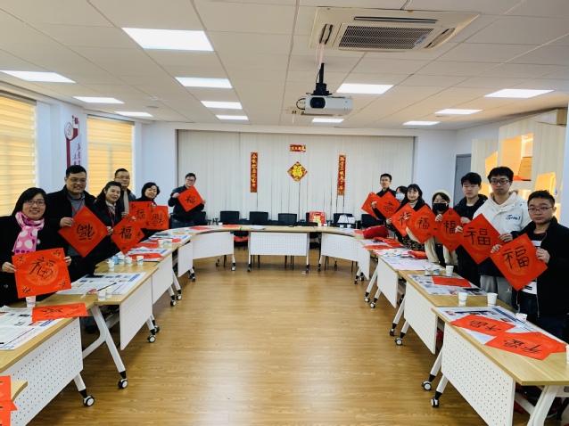 最后,老师和同学们用中华民族传统文化的风俗迎接新年,他们挥毫泼墨一起写下了“福”字,也写下了对新春美好的期盼、对学校、学院发展的深情祝福。