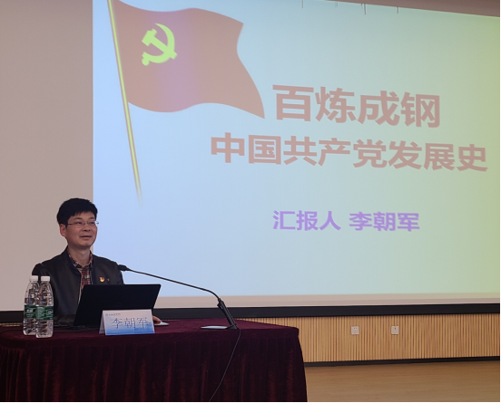 专题学习环节,复旦大学历史学博士李朝军作了题为《百炼成钢:中国共产党发展史》党史学习教育专题报告。他从引论、本论、结论三个方面展开,从为什么要开展党史学习教育、党史学习的主线和本质两方面讲解了中国共产党波澜壮阔的革命过程。报告以丰富的史实和生动的事例带领大家深刻体会了党的事业创业之艰难,革命成果来之不易,深化了对中国共产党矢志践行初心使命、筚路蓝缕奠基立业和创造辉煌开辟未来一百年历史的认识,激发了学院师生继承和发扬中国共产党的红色革命精神,做到理论上清醒、政治上坚定。