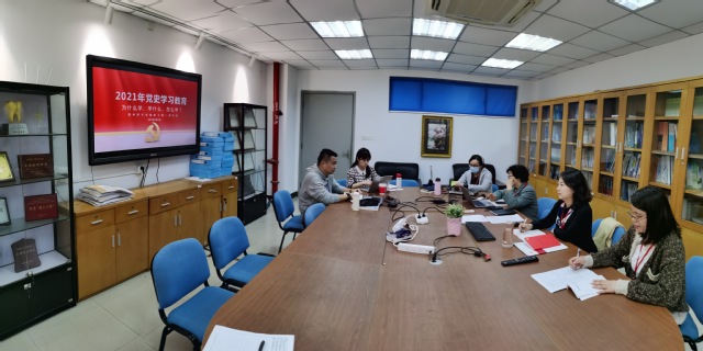 随后,周璟同志介绍了2021年党史学习教育的活动方案,重点强调了本年度在 “党课开讲啦”、“我为群众办实事”、“我为建党百年打卡”这三个主题活动的工作设想及安排。与会人员积极讨论,提出将党史学习教育融入课程思政育人“大课堂”,不断推动青年大学生在浩瀚党史中领悟大道、奋楫前行、不懈奋斗。