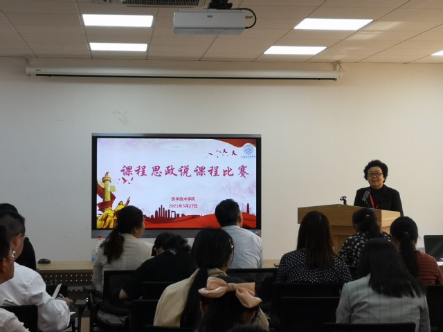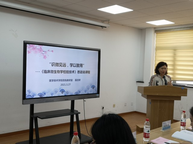 为了发挥课程思政教育的典型示范作用,培育课程思政示范课程,医学技术学院于2021年5月27日下午13:00在4507会议室举办2021年课程思政说课比赛。会议邀请上海立信会计金融学院国际经贸学院的程振强教授、上海交通大学医学院免疫学与微生物学系刘畅副教授,医学技术学院郑红副教授、陈凤贞副院长、高晓霞副书记担任评委。会议由学院教学副院长陈凤贞主持,全院教师进行观摩。