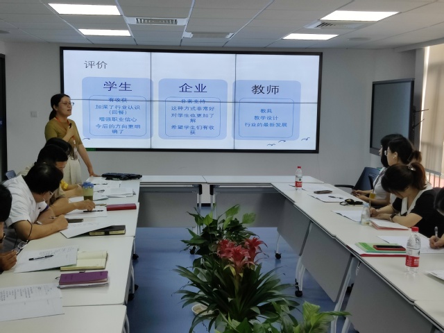 首先,周静老师从“小学期的探索与实践”为题重点介绍了见习工作安排。她从工作动机出发,一是解决传统二学期制难以实现优质教学资源共享的问题实践特色,二是让实践教学更加系统化。为了更好地做好见习工作,她提前和企业进行了沟通,精心设计专业见习方案,并注重同学的信息反馈。这样的精心安排一方面得到了企业的认可,也调动学生的学习积极性,创造良好的学习环境。平凡中坚持付出,付出中收获学生的爱,周老师就是这样坚持育人初心的。