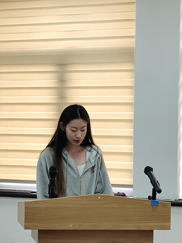 会议开始,首先由2020级口腔医学技术(本科)2班班长史懿婷同学进行半军事化管理的总结汇报。史懿婷同学从半军事化管理的背景意义、训练内容、收获及总结展望四个部分,采用图文结合的方式进行汇报。一年以来的半军事化管理不仅帮助同学们强健了体魄,也监督协助着同学们逐渐养成良好的生活习惯,自律的学习习惯,使同学们收获多多,感触多多。