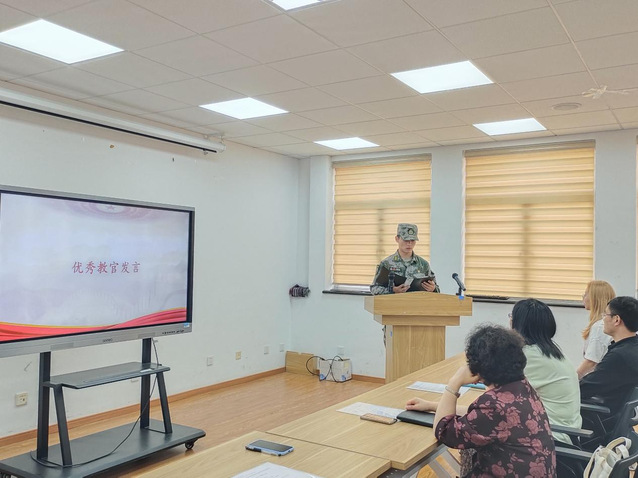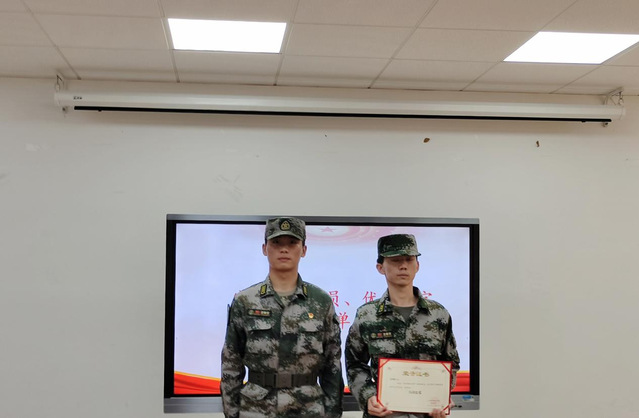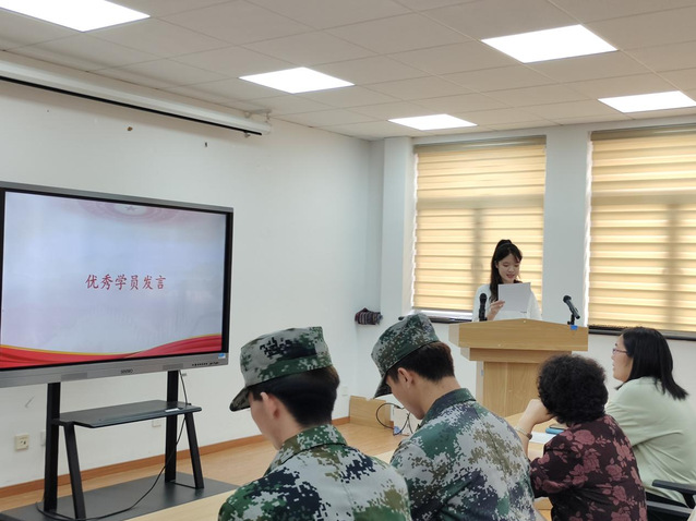 在半军事化管理与日常行为规范中也涌现了许多优秀学员,它们分别是来自20级口腔医学技术本科1班的李佳一同学、2班的朱滢同学与马超同学。而通过前期线上投票的形式,同学们也选出了自己心目中的优秀教官:吕帅教官。三位优秀学员依次上台向大家分享自己在半军事化管理期间的感悟与心得:虽然在刚开始实行半军事化管理的时候,内心存在疑惑与不解,但在训练的过程中,我们也逐渐意识到自己的身体素质再慢慢增强。守时自律的习惯、健康合理的作息,定时打扫的举动与礼貌文明的举止都是在半军事化管理期间不知不觉养成的。体会了蕴藏在其中的目的与意义,半军事化管理的生活也不再枯燥而乏味。评选为优秀教官的吕帅教官分享了在训练过程中的所见所闻与所感:同学们配合教官安排积极参加升旗仪式、早锻炼以及早读等活动,守时的习惯令人欣慰。看到同学们在半军事化管理期间的不断成长,教官也是喜在心中。同时他也希望同学们能将养成的良好习惯一直坚持下去。