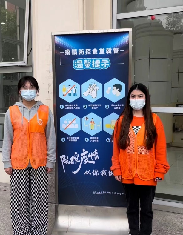 樊瑾瑜同学此次担任北苑A1餐饮组组长,负责管理食堂、教育超市等区域的就餐秩序。在学校第一时间积极响应上海市疫情防控工作的统一部署、启动校园准封闭管理之际,她接到通知便第一时间配合组织的安排、毫不犹豫地上岗工作。