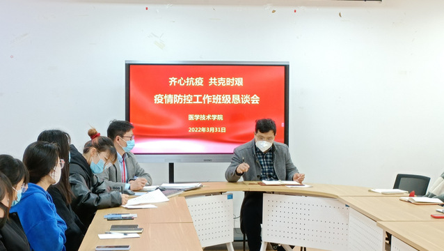 此次线下恳谈会,为同学们和校院防控工作搭建了沟通平台,加深了同学们对学校防控工作的理解与支持,增强了打好疫情防控战斗的信念与决心,为学院的疫情防控顺畅、高效、有序的进行奠定了更好的基础。疫情防控期间,医学技术学院也会继续不断努力,有序组织并开展工作,做好人文关怀,“齐心抗疫 共克时艰”。