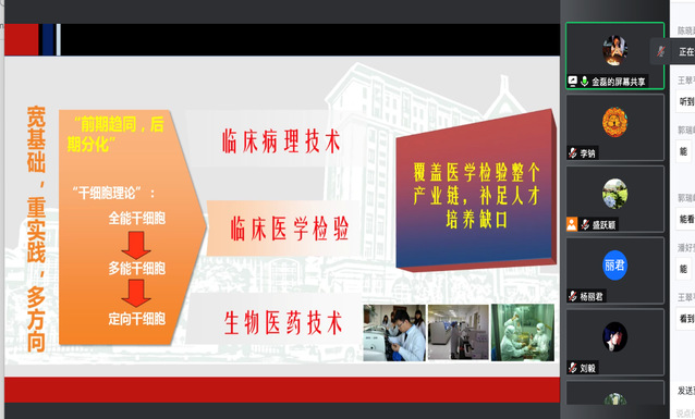 为了进一步理清专业建设思路,推进本科教学工作合格评估, 3月31日,医学技术学院三个本科专业进行专业主任“说专业”活动,全体专任教师线上参加。