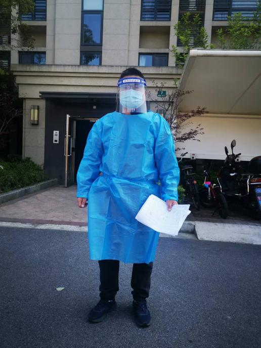 辅导员杨宇海老师刚刚从学校的抗疫一线下来,目前正在担任小区志愿者。接到学校的号召,面对刚出生几个月的儿子,这次他毅然第一时间响应:“一名党员,就是一面旗帜。这一面面旗帜的展开将汇聚成上海抗疫成功的胜利大旗,希望能力有所及的为上海出一份力。”