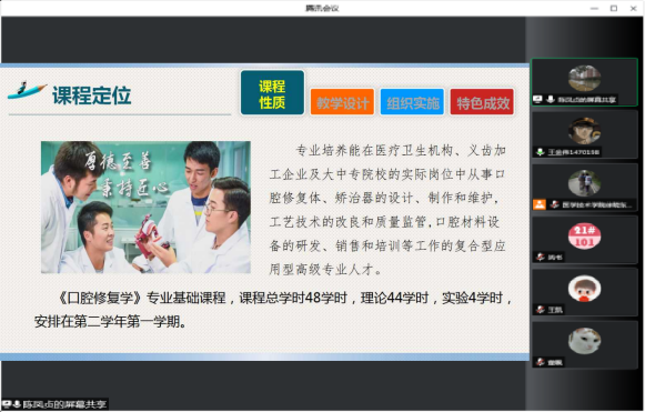 为了进一步推进本科教学合格评估工作,学院在开展医学检验技术和卫生检验与检疫技术专业教师“说课程”活动之后,于2022年4月21日又开展了口腔医学技术专业线上教师“说课程”专题教研活动,专业全体教师在线参加。